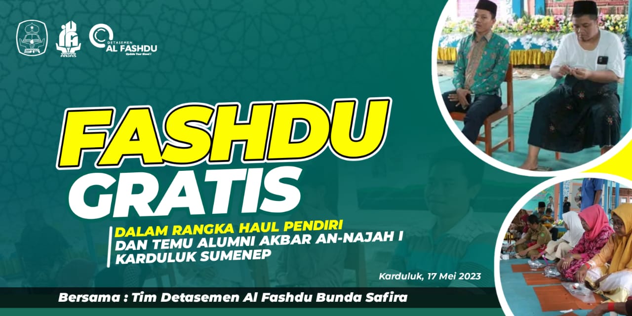 “Untuk menyemarakkan Haul dan temu alumni yang pertama ini, kita akan menggelar kegiatan sosial seperti Fashdu Gratis untuk 100 orang yang akan digelar pada tanggal 17 Mei sebagai pembuka kegiatan, siapapun boleh mendaftar karena kegiatan Fashdu ini untuk umum, cuma kita batasi 100 kuota, karena berkaca pada tahun sebelumnya peminat Fashdu sampai membludak sementara praktisi yang kita siapkan cuma 1 orang yang merupakan alumni An-Najah I Karduluk sendiri”, terangnya.