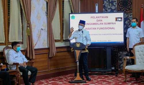 PAMEKASAN, Cyberjatim.id,- Pelangikan dan pengambilan sumpah pejabat fungsional yang digelar dipendopo Ronggosukowati kabupaten Pamekasan berjalan dengan lancar .