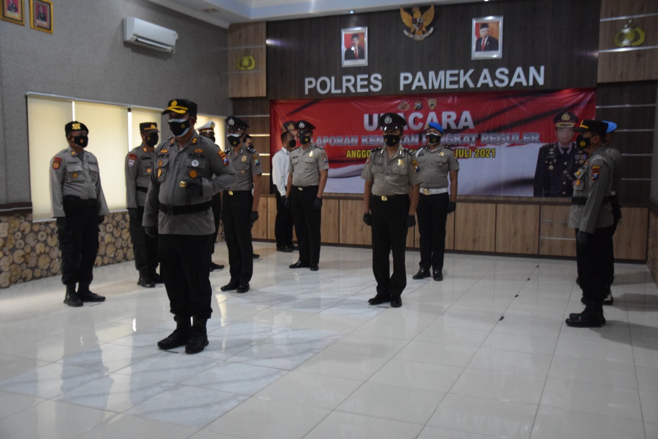 Bertepatan dengan hari Bhayangkara ke-75, Kepolisian Resor Pamekasan, Madura, Jawa Timur gelar Upacara Korp Raport TMT 01 Juli 2021.