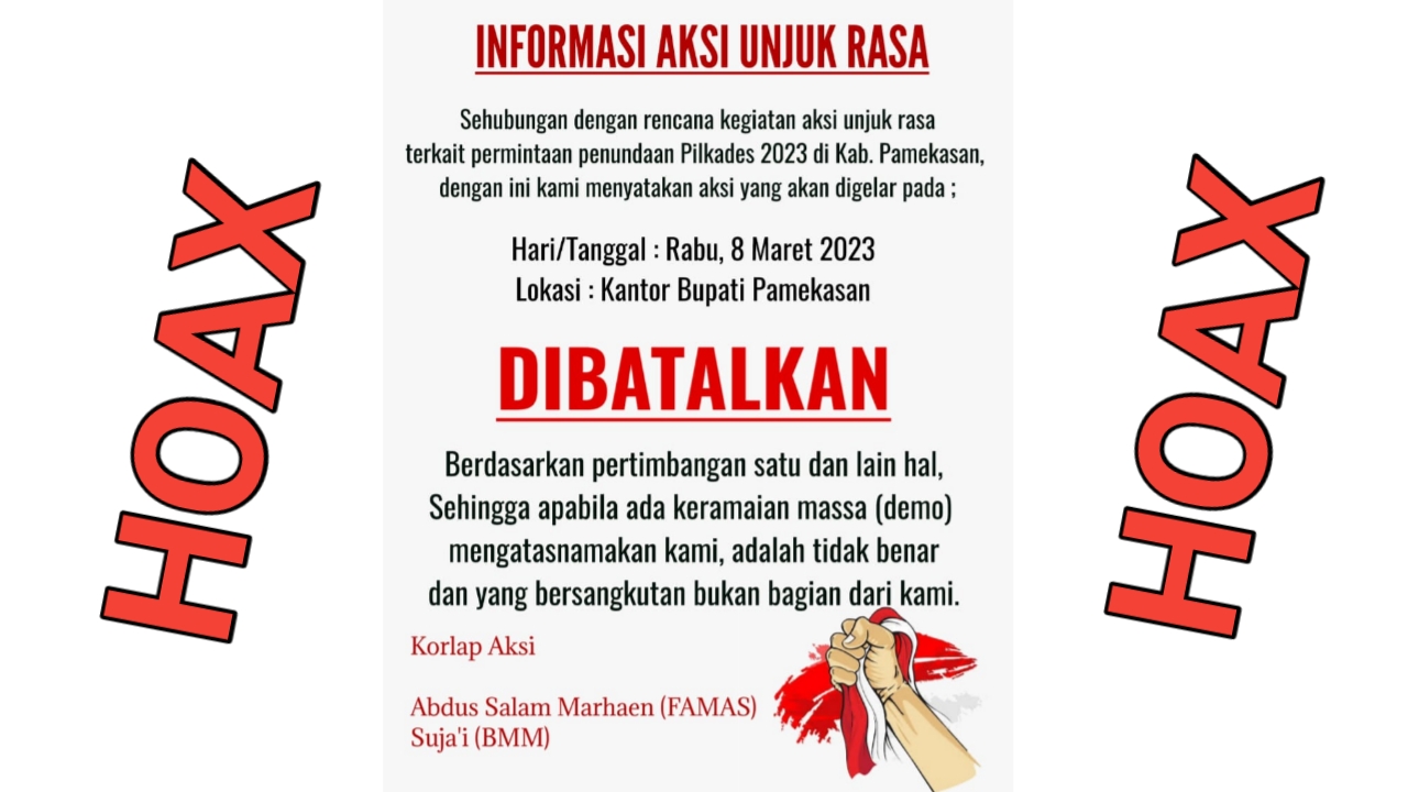 ” Bodoh ! isu hoax itu sengaja diluncurkan dan saya yakini kepada seluruh masyarakat Pamekasan, kalau aksi ini akan tetap kami gelar, ini bukan hanya suara dari Famas dan BBM tapi ini suara rakyat yang menginginkan Pemilu mendatang berjalan lancar dan kondusif, Pemerintah harus tegas jangan memaksakan diri jika anggarannya tidak ada “. Ujarnya saat dihubungi via WhatsApp