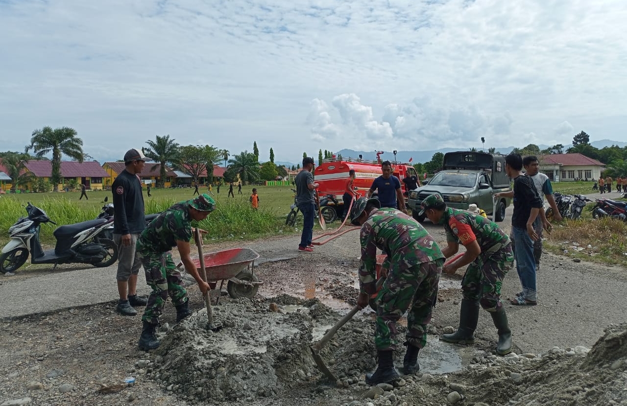 Camat juga mengatakan, dengan hadirnya TNI membantu pengecoran jalan tentu berpengaruh pada pekerjaan tersebut. TNI bisa menjadi penyemangat dalam gotong royong tersebut.