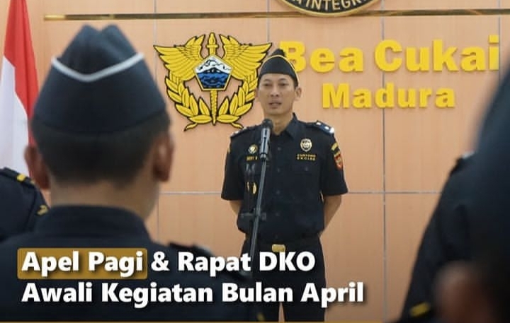 PAMEKASAN, CYBERJATIM.ID, – Apel pagi yang rutin dilaksanakan tiap bulannya oleh Bea Cukai Madura kembali di gelar. Bertempat di aula kantor bea cukai madura, seluruh pegawai mengikuti apel pagi pada hari rabu (5/4). Dedy Kurniawan, Kepala Seksi Perbendaharaan berkesempatan menjadi pembina apel. Ada beberapa poin yang disampaikan oleh Dedy pada saat amanat apel. Senin (10/04/23)