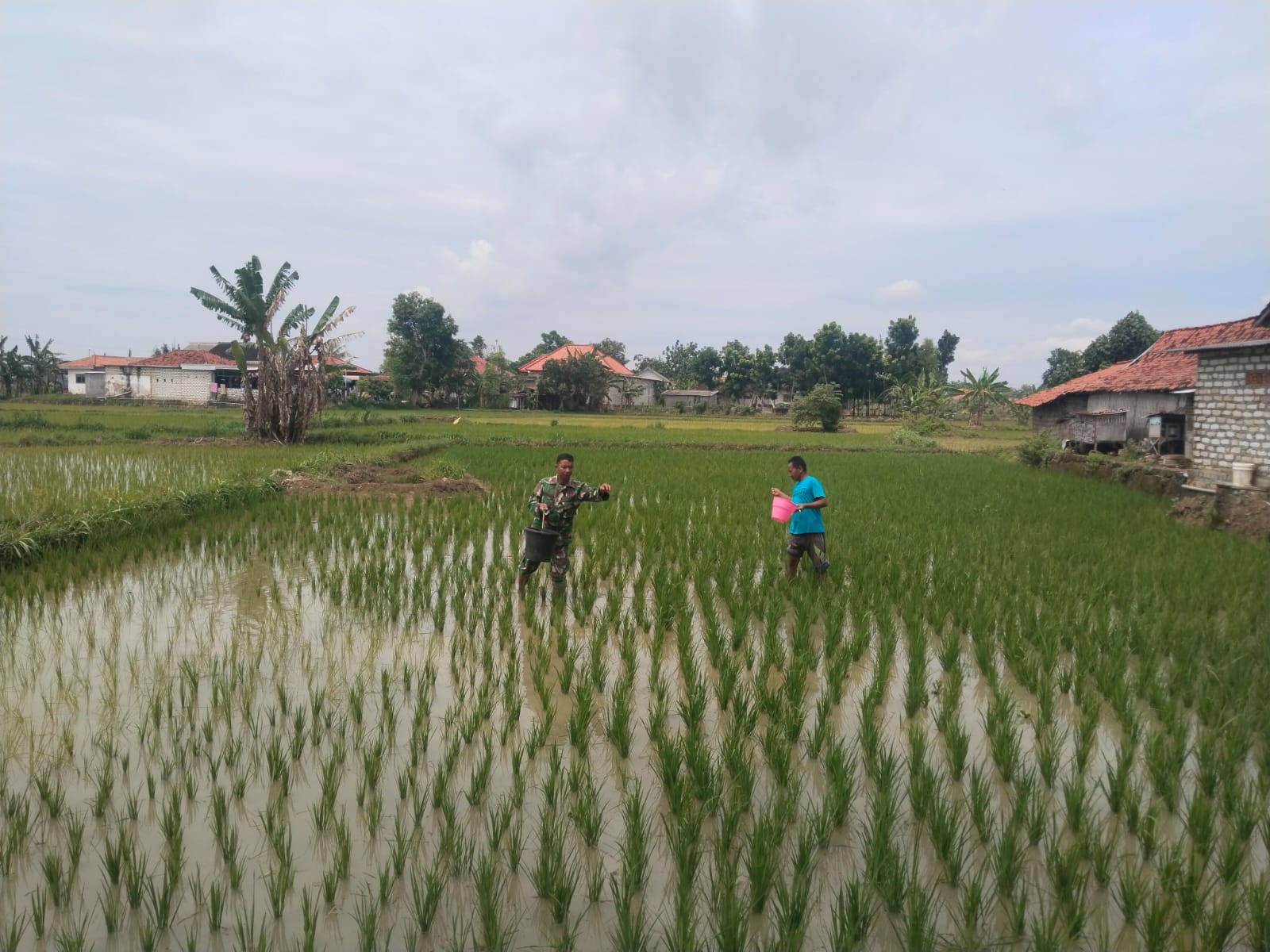 Babinsa Koramil Kota Dampingi Pemupukan Padi Petani Kangenan Dukung Swasembada Pangan