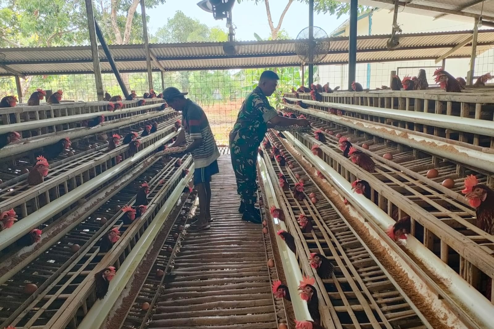 Babinsa Larangan Dampingi Peternak Ayam Petelur di Pamekasan, Produksi Capai 70 Kg per Hari