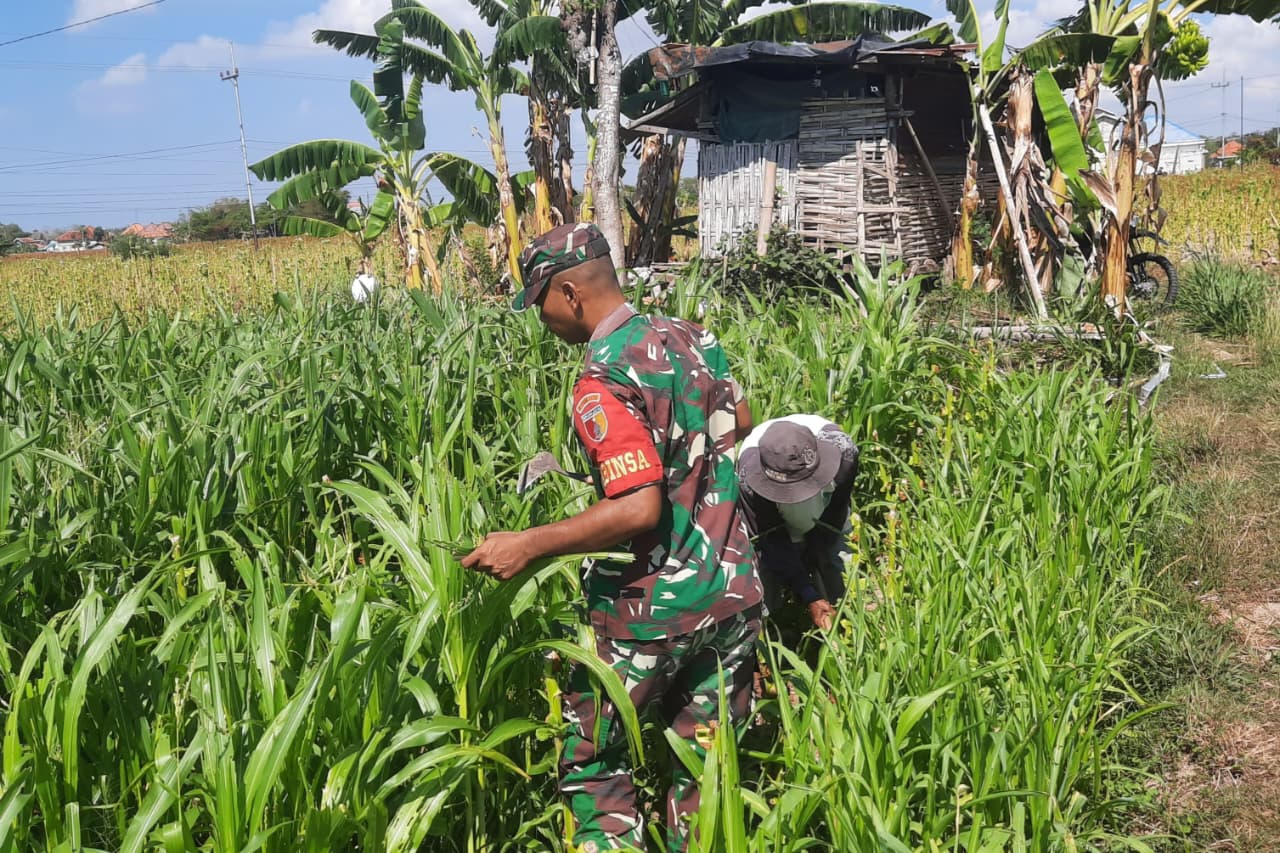 Babinsa Waru Bantu Petani Bersihkan Gulma Tanaman Jagung di Pamekasan