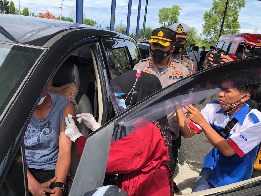 Polres Pamekasan, Madura meluncurkan program inovasi ‘Drive Thru Vaksinasi Covid-19’ yang ditempatkan di Pos Penyekatan, tepatnya di Terminal Barang, Jalan Raya Larangan Tokol, Kecamatan Tlanakan, Kabupaten Pamekasan.
