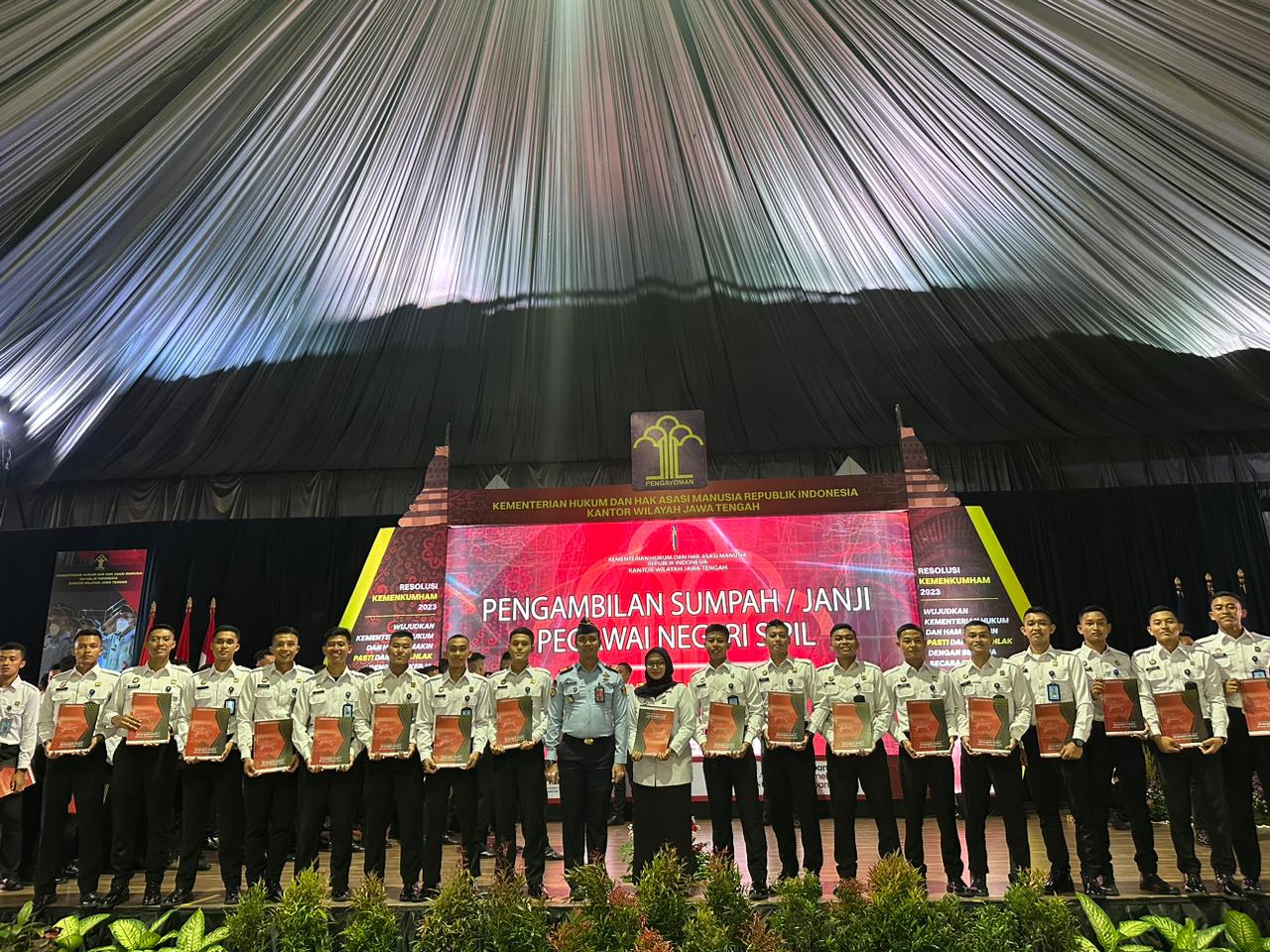 Bersama dengan 597 CPNS di lingkungan Kementerian Hukum dan HAM Jawa Tengah lainnya, pengambilan sumpah dipimpin langsung oleh Kepala Kantor Wilayah Jawa Tengah, A. Yuspahrudin.