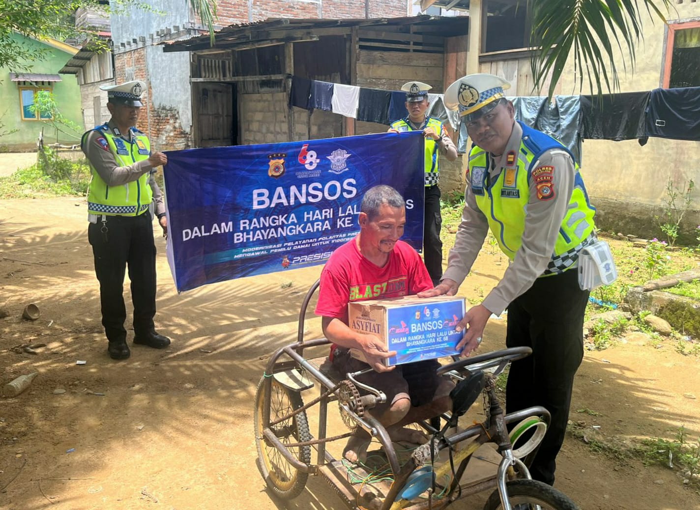 Dalam Rangka Hari Lalu Lintas Ke 68, Kasat Lantas Polres Aceh Selatan Salurkan Bansos Untuk Masyarakat.