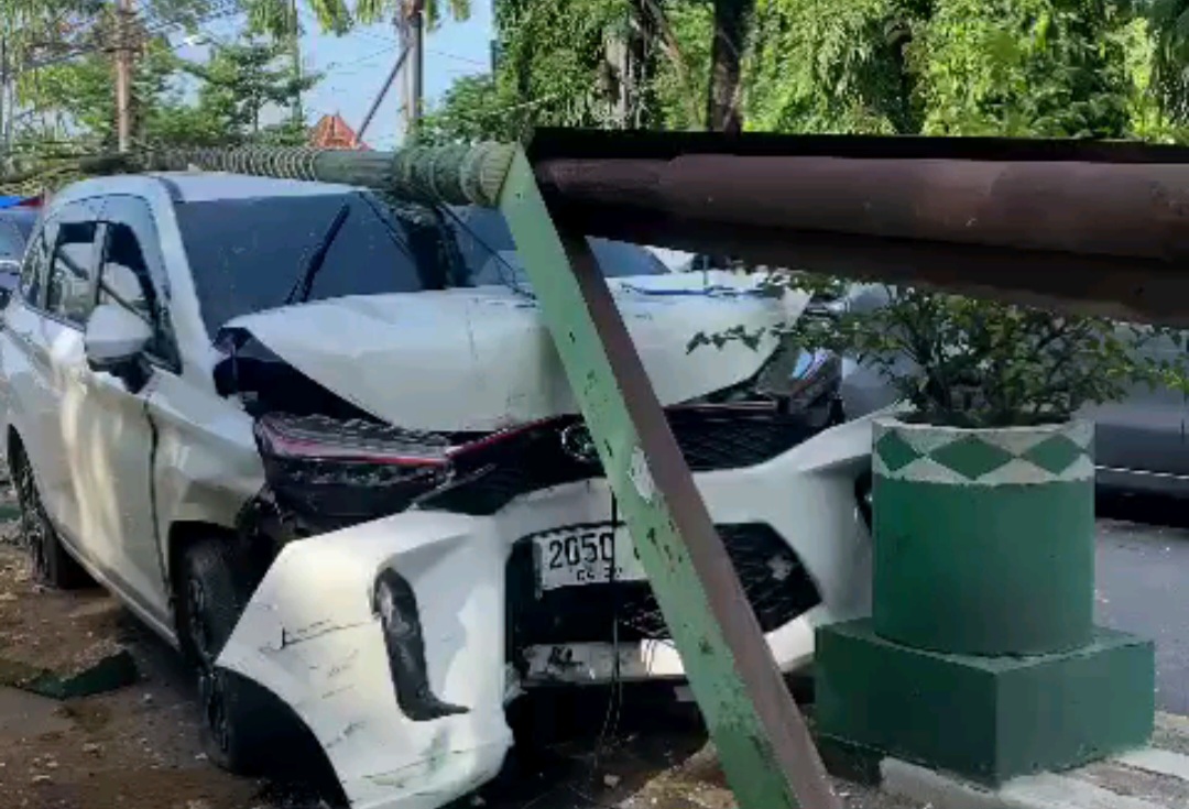 Dihari Pertama Ramadhan, Kendaraan Mini Bus No.Pol B 2050 PZX Tabrak Pembatas dan Tiang Listrik di Pamekasan