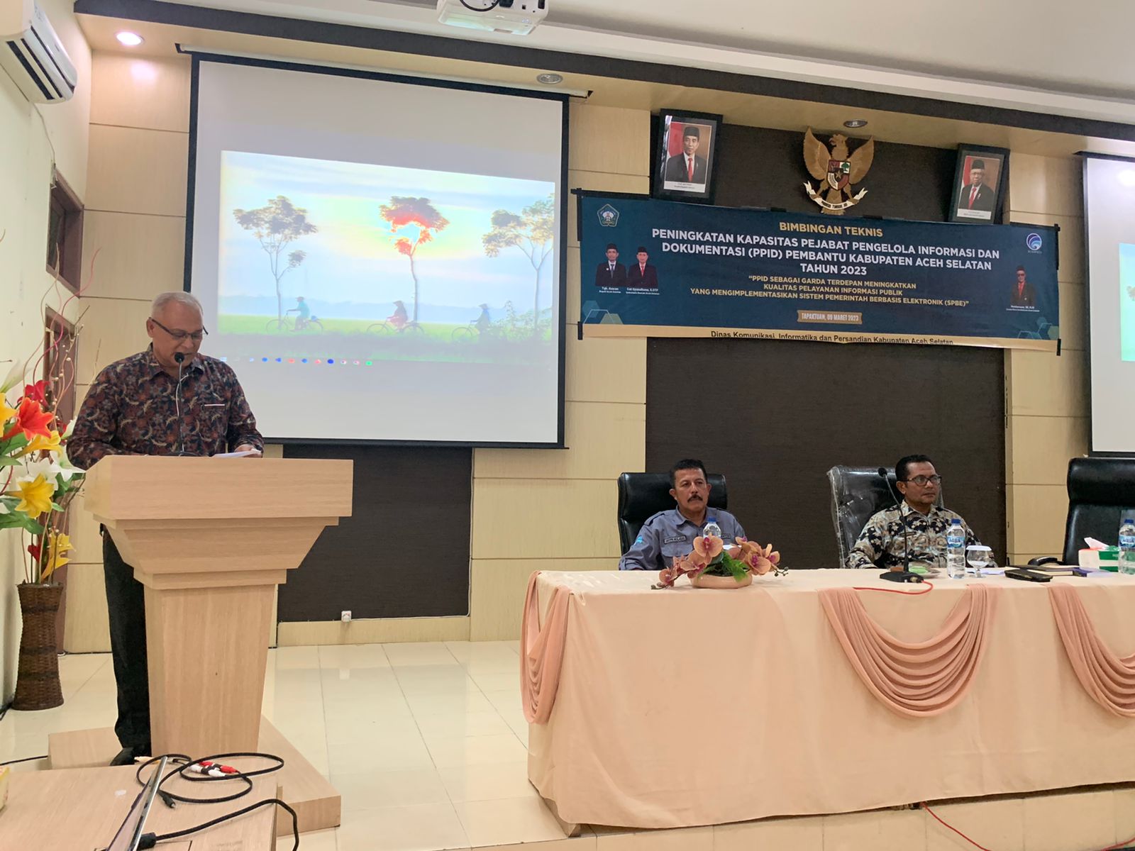 Asisten I Setdakab Aceh Selatan Kamarsyah S.Sos, MM dalam sambutannya, Pejabat Pengelola Informasi dan Dokumentasi atau dikenal dengan (PPID), memiliki peran penting sebagai pengelola dokumen informasi yang dimiliki oleh badan publik, sebagaimana diatur dalam undang-undang nomor 14 tahun 2008 tentang keterbukaan informasi publik.