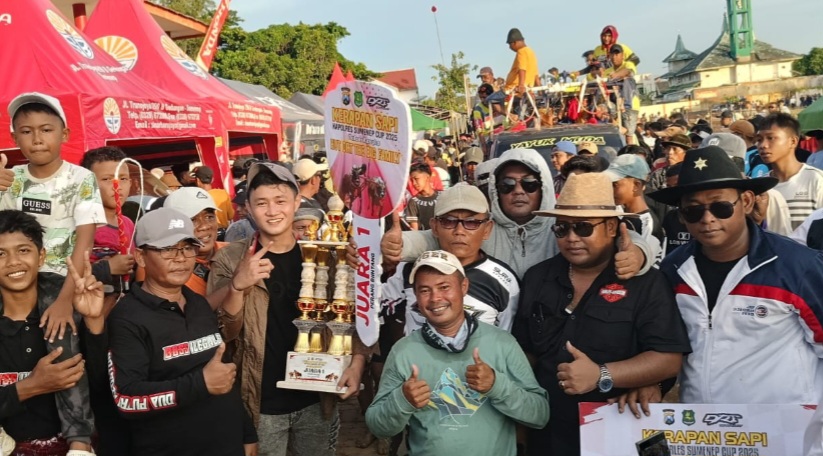 SUMENEP, CYBERJATIM.ID,- Pasangan Sapi dengan nama “Tak Mau Dimadu 99” milik H. Fathor Rosi menjadi juara pertama Karapan Sapi Kapolres Sumenep Cup 2025 yang digelar di Lapangan Karapan Sapi Sumenep, Minggu (13/12/2025).