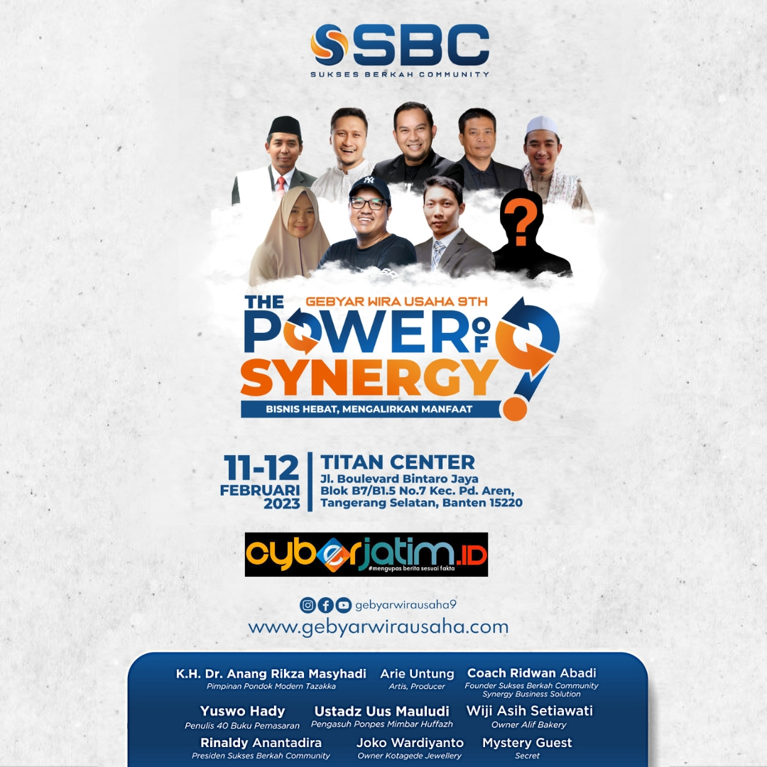 Sukses Berkah Community (SBC) mempersembahkan Event Akbar Gebyar Wirausaha (GWU) 9. Acara bertajuk “The Power of Synergi” tersebut akan digelar pada hari Sabtu dan Minggu ( 11- 12 Februari 2023) di Titan Center, Bintaro, Tangerang.