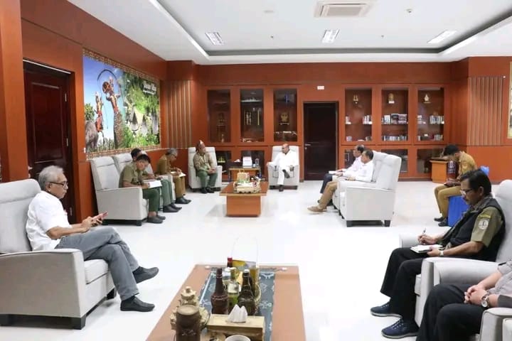 NTT, CYBERJATIM.ID – Gubernur NTT Viktor Bungtilu Laiskodat (VBL) menerima kedatangan Kepala Balai Besar Konservasi Sumber Daya Alam (BBKSDA) Provinsi NTT, Arief Mahmud. Maksud kedatangan Kepala BBKSDA NTT untuk menginformasikan kepada Gubernur terkait dengan pelaksanaan acara Penyerahan Surat Keputusan Tanah Obyek Reforma Agraria (TORA) dan Surat Keputusan Hutan Sosial oleh Presiden Joko Widodo kepada masyarakat yang akan dilaksanakan di Provinsi Kalimantan Timur.