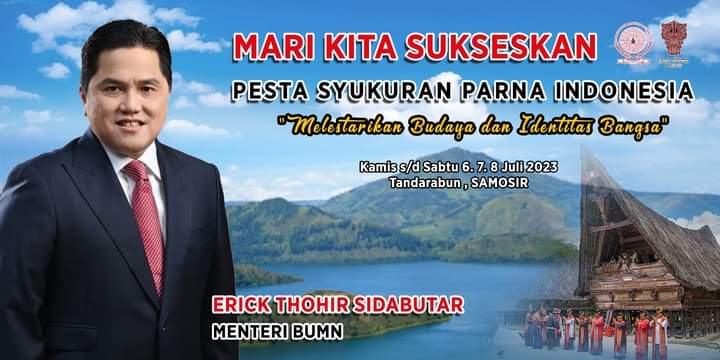 TANDARABUN, Samosir Sumatera Utara, CYBERJATIM.ID – ERICH TOHIR SIDABUTAR Menteri BUMN dan Ketua umum IKATAN TENAGA AHLI KONSTRUKSI INDONESIA(ITAKI) HEBER SIMBOLON mengundang seluruh masyarakat suku Batak Toba se-Indonesia untuk menghadiri acara pesta syukuran Parna se-Indonesia di TANDARABUN,SAMOSIR pada tanggal 6,7,8 bulan 7.