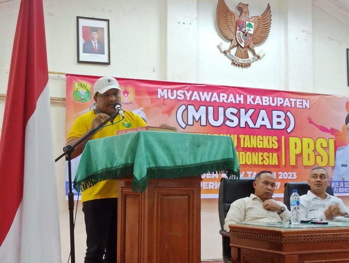 Ketua KONI Bireuen, H. Mukhlis, A.Md, S.H dalam kata sambutannya dan sekaligus membuka secara resmi acara Musda PBSI Bireuen ini menyampaikan apresiasi atas prestasi PBSI dalam PORA XIV Pidie yang bisa mendulang prestasi 3 (tiga) medali perunggu.