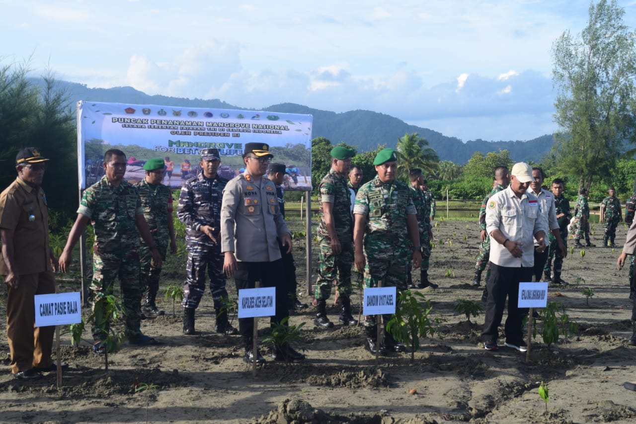 Ikuti Penanaman Serentak, Kodim 0107/Aceh Selatan Kembali Tanam Mangrove di Pasi Raja