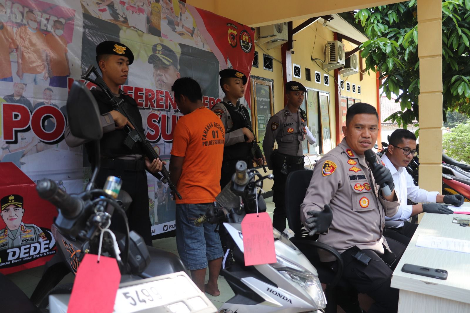 Konferensi Pers Ungkap Kasus Tindak Pidana Pencurian Dengan Pemberatan Kendaraan Sepeda Motor dipimpin langsung Oleh Kapolres Sukabumi Polda Jabar AKBP Maruly Pardede SH, SIK, MH, dan di dampingi oleh Kasat Reskrim Polres Sukabumi Polda Jabar AKP Dian Pornomo.,S.I.K.,M.H., dan Kasi Humas Polres Sukabumi Iptu Aah Saeful Rohman.
