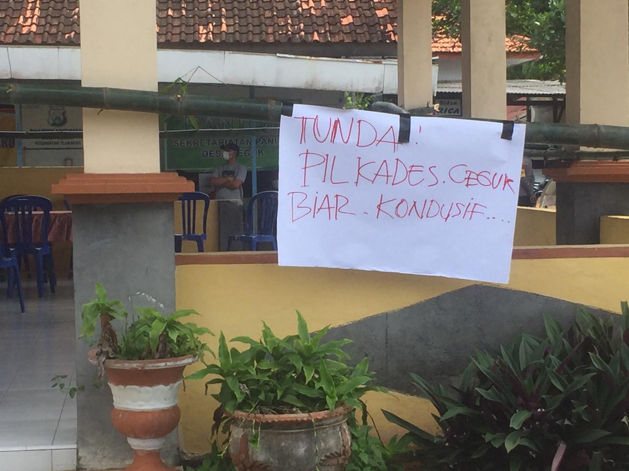 Sejumlah warga Desa Ceguk meminta pagelaran Pilkades ditunda, dengan melakukan penyegelan kantor Kepala Desa