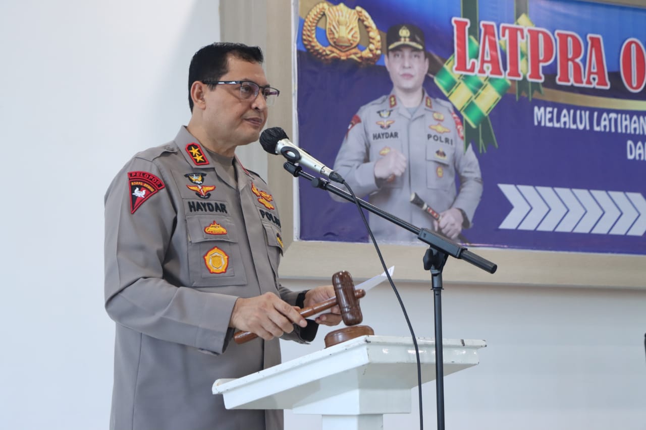 BANDA ACEH-CYBERJATIM.ID. Kapolda Aceh Irjen Ahmad Haydar membuka secara resmi pelatihan pra operasi (Latpraops) Ketupat Seulawah tahun 2023 di Aula Ditlantas Polda Aceh, Lamteumen, Kota Banda Aceh, Kamis, 13 April 2023