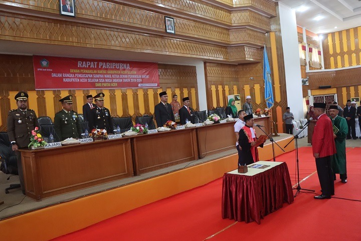 Pelantikan sisa masa jabatan tahun 2019-2024 untuk jabatan Wakil Ketua DPRK Lisa Elfirasman, S.T. secara langsung di ambil sumpah nya oleh ketua pengadilan negeri Tapaktuan Gugun Gunawan, SH.