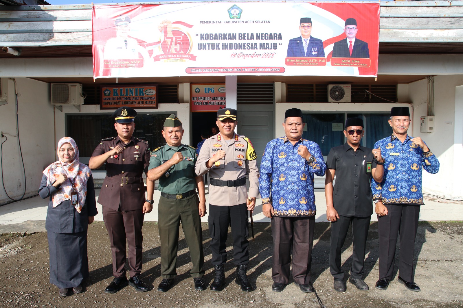 Tapaktuan-Cyberjatim.id. Pemerintah kabupaten (pemkab) Aceh Selatan menggelar Upacara Hari Bela Negara ke 75, bertempat di halaman kantor Bupati lama, Tapaktuan, Selasa (19/12/2023)