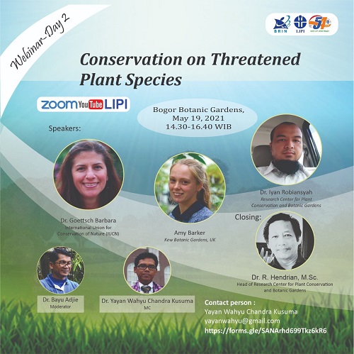 Pembicara dalam webinar tersebut berasal dari Botanic Gardens Conservation International (BGCI), International Union for Conservation of Nature (IUCN), Singapore Botanic Garden – Singapore, Kew Botanic Garden – UK, Bali Botanic Garden, dan Bogor Botanic Garden.
