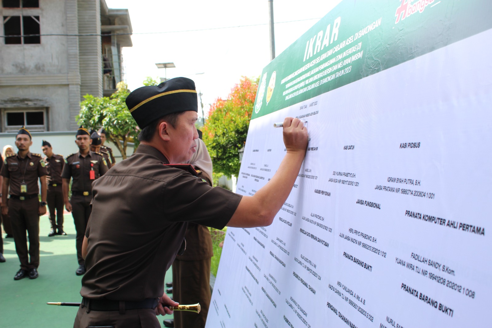 Kejaksaan Negeri Aceh Selatan beserta Cabang Kejaksaan Negeri Aceh Selatan di Bakongan melaksanakan Penandatanganan Pakta Integritas menuju Wilayah Bebas Korupsi (WBK) dan Wilayah Birokrasi Bersih Melayani (WBBM) bertempat di halaman Kantor Kejaksaan Negeri Aceh Selatan pukul 09.00 WIB.