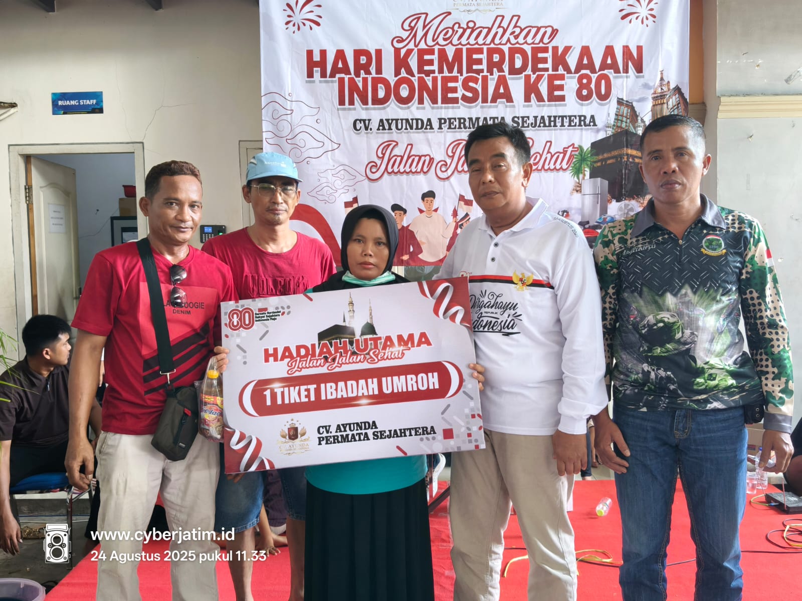 PAMEKASAN, CYBERJATIM.ID,- Dalam rangka memeriahkan Hari Ulang Tahun (HUT) Republik Indonesia ke 80, CV Ayunda Permata Sejahtera menyelenggarajan kegiatan Jalan – Jalan Sehat (JJS) berhadiah umroh. Minggu (24/8/2025)