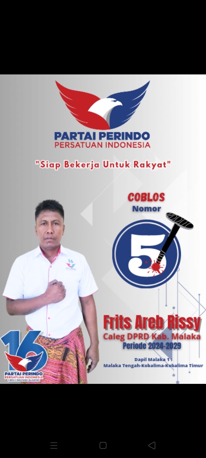Malaka, CYBERJATIM.ID – Frits Areb Rissy, ketua pemuda perindo, calon anggota DPRD kabupaten Malaka, sudah ditetapkan oleh partai perindo dengan nomor urut 5, dan daerah pemilihan dapil l kabupaten Malaka.