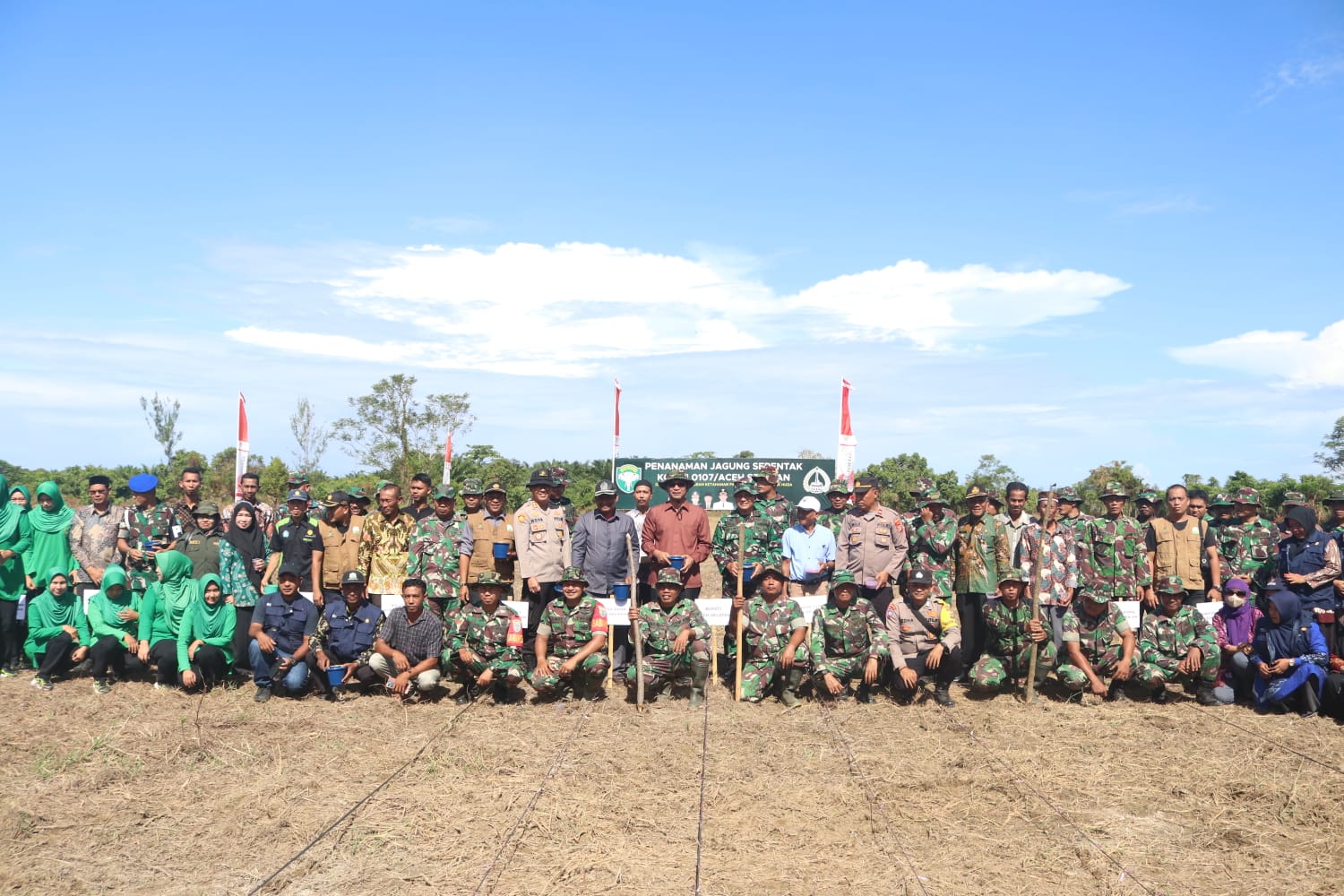 ACEH SELATAN-CYBERJATIM.ID. Sebagai upaya memperkuat ketahanan pangan, Kodim 0107/Aceh Selatan bersama unsur Forkopimda dan pihak terkait lainnya melaksanakan penanaman Jagung dilahan Ketahanan Pangan dan Demplot Kodim 0107/Aceh Selatan yang bertempat di Desa Kampung Baro Kecamatan Pasi Raja Kabupaten Aceh Selatan, Kamis (26/05/2023).