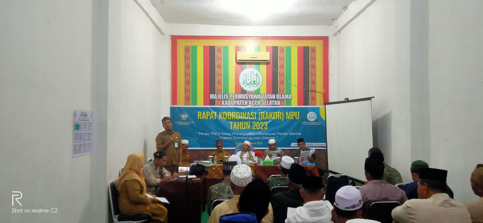ACEH SELATAN-CYBERJATIM.ID. Majelis Permusyawaratan Ulama (MPU) Kabupaten Aceh Selatan melakukan rapat koordinasi tahun 2023 dengan tema, “peran MPU guna mewujudkan eksistensi peran ulama dalam pembangunan daerah” yang dilaksanakan di aula MPU setempat, Selasa (14/3/2023).