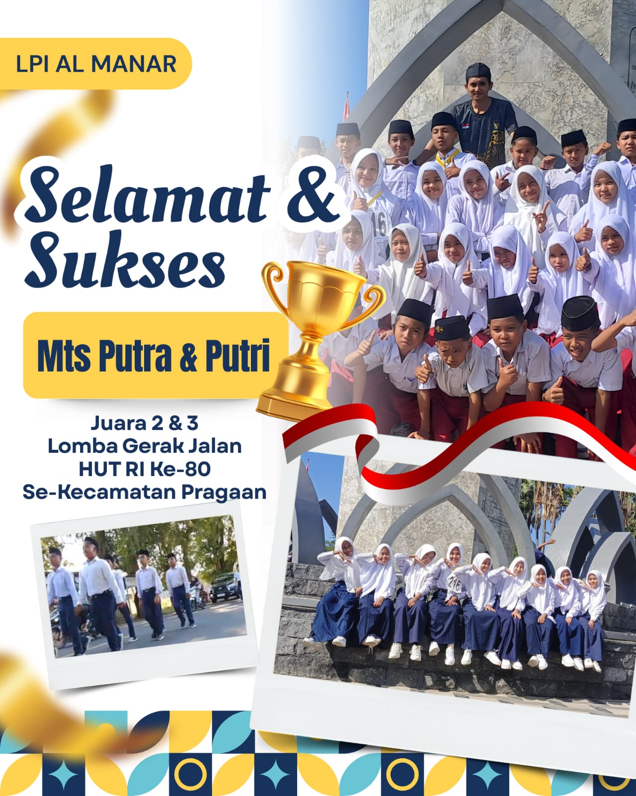 Menjadi sebuah kebagaan bagi LPI Al Manar, Brumbung, Desa Prenduan, Kecamatan Pragaan, Sumenep setelah siswa dan siswinya berhasil meraih juara diacara gerak jalan tersebu.