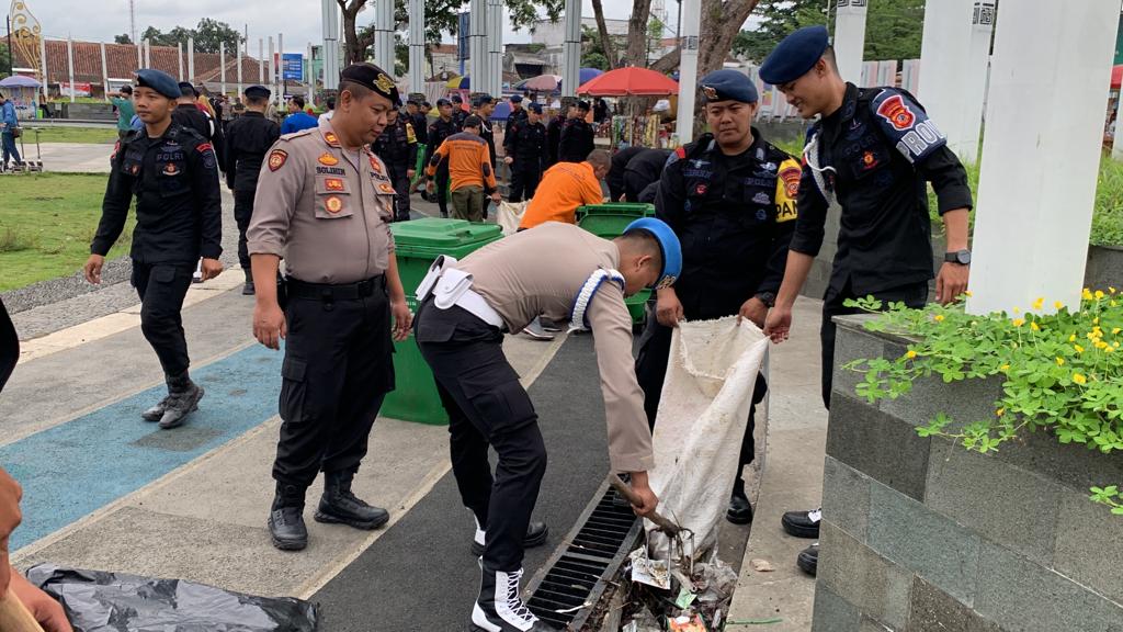 PEDULI LINGKUNGAN SAT BRIMOB POLDA JABAR MEMBERSIHKAN SAMPAH