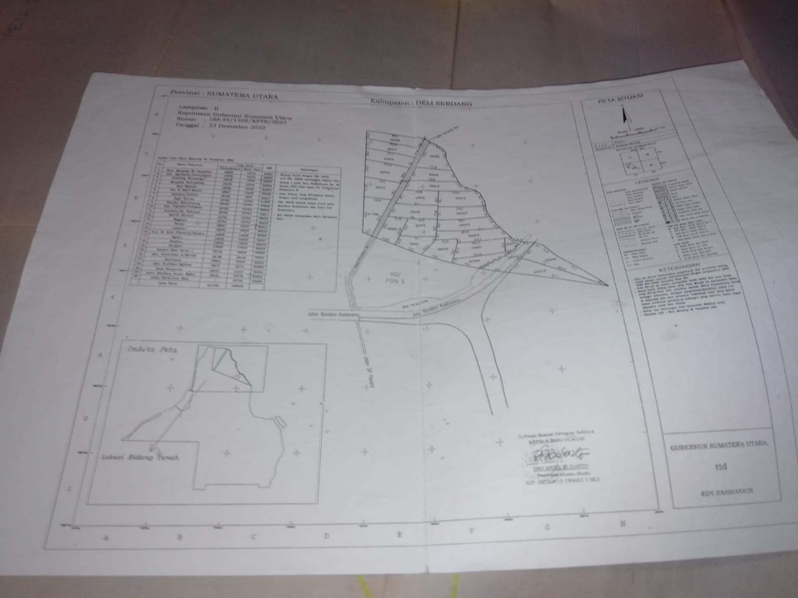 SK Gubsu No 188.44/1108/KPTS/2022 yang ditandatangani oleh Kepala Biro Hukum Dwi Aries Sudarto Pada Tanggal 23/12/2022