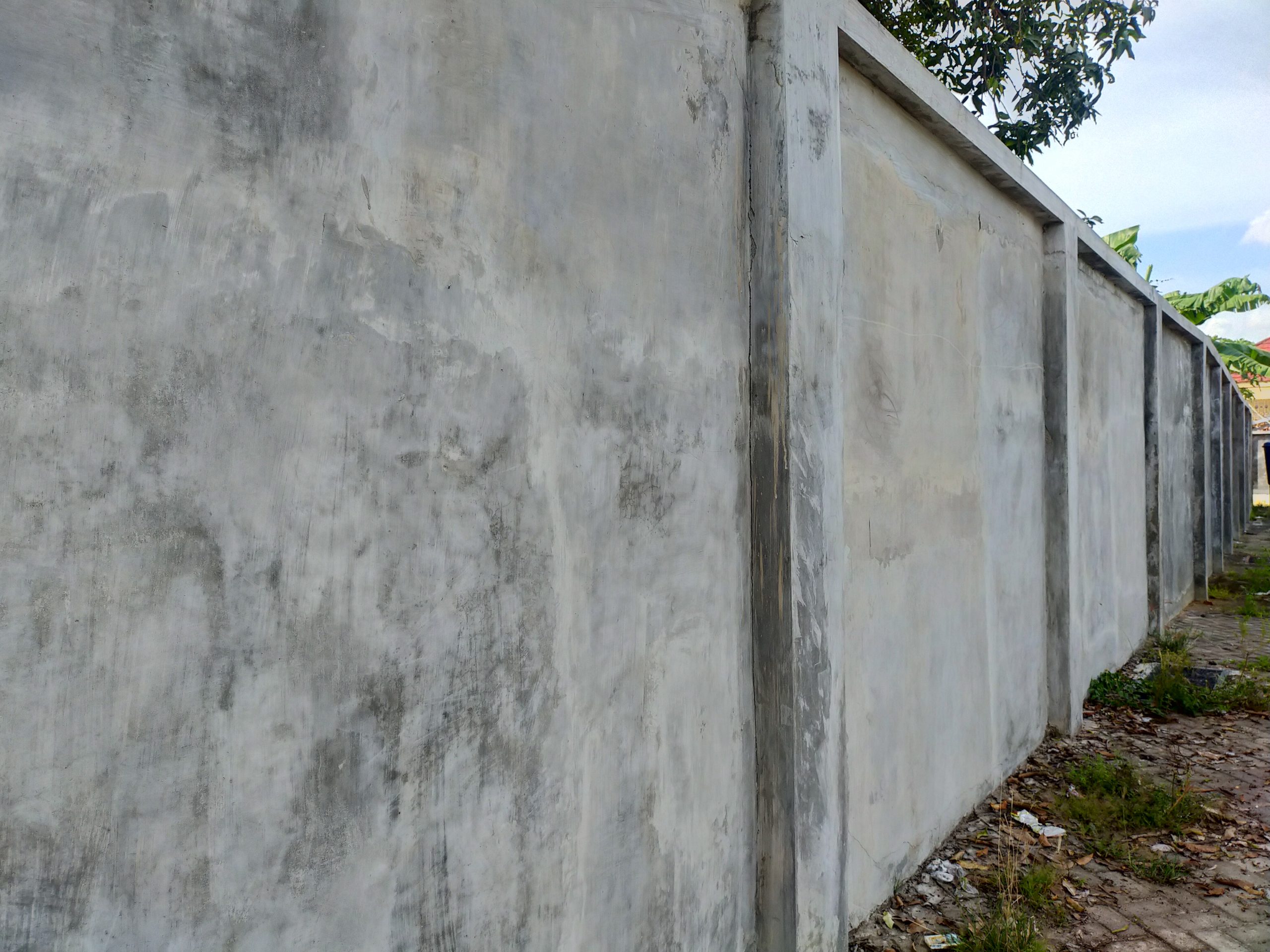 Pagar yang berdiri tegak mulai retak dan hamparan paving yang dikerjakan beberapa tahun lalu mulai bergelombang atau rusak.