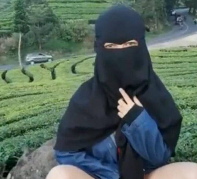 Dilihat pada video berdurasi 46 detik memperlihatkan seorang perempuan bercadar warna hitam tengah duduk diatas sebuah batu besar di kelilingi hamparan kebun teh.