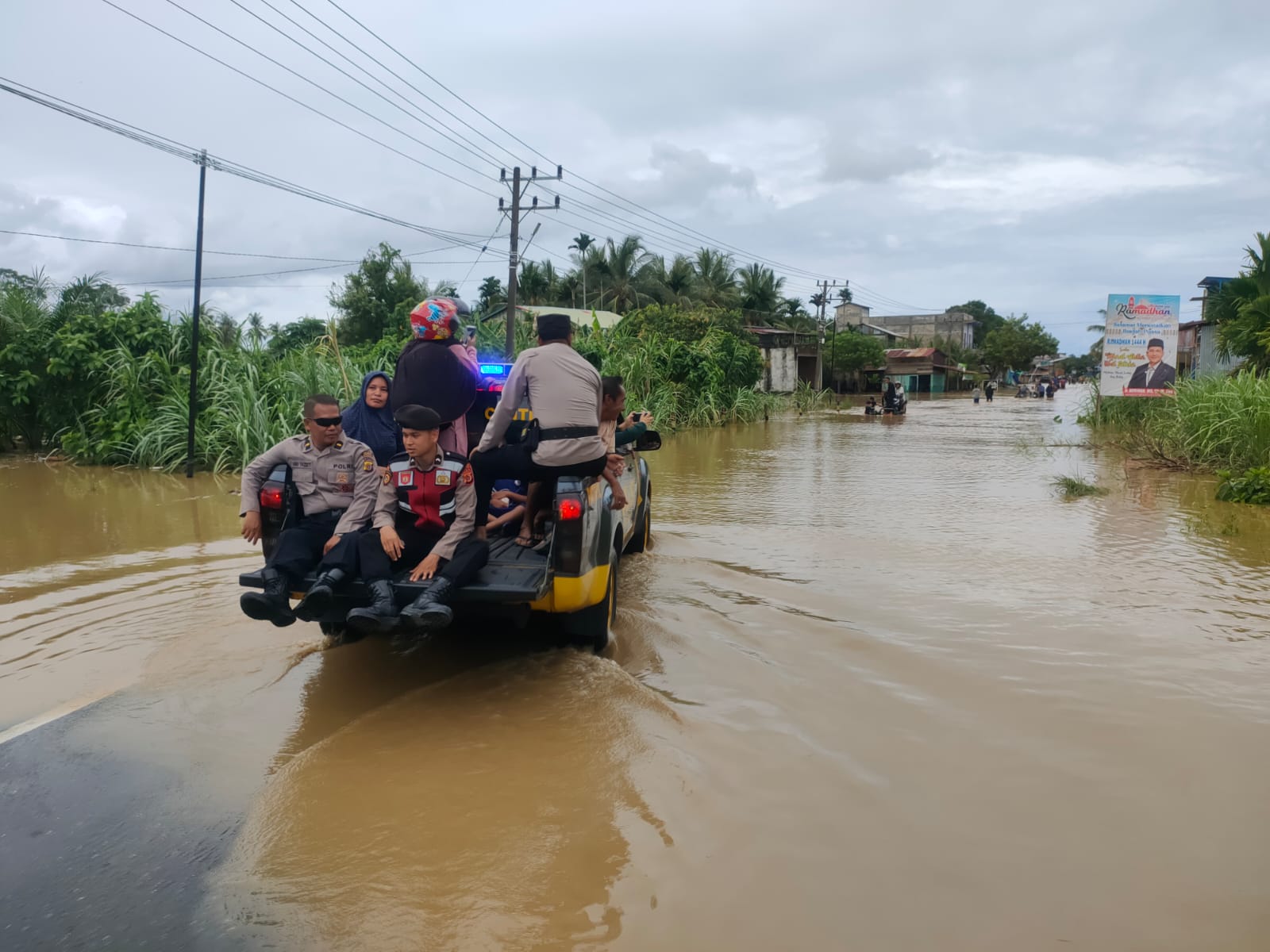 Polres Kerahkan Puluhan Personil Bantu Masyarakat Terdampak Banjir Di Kluet Utara Dan Kluet Selatan.