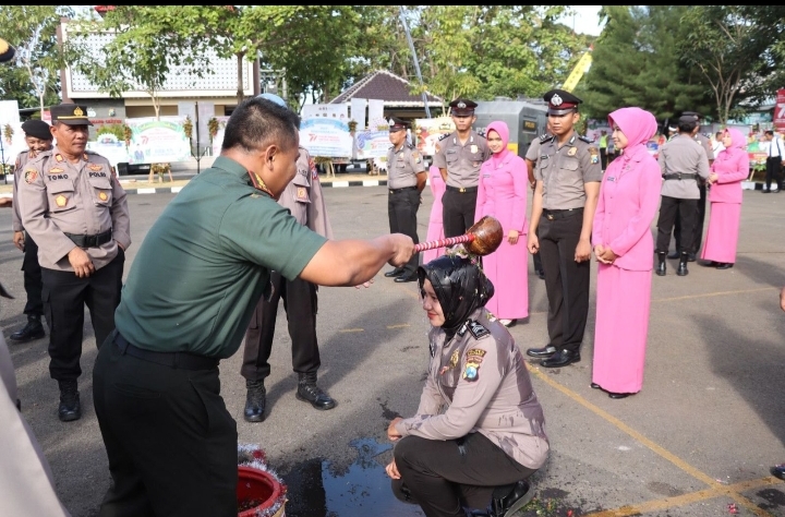 Hadir dalam upacara tersebut Wakapolres Sampang Kompol Jalaludin SH, PJU Polres Sampang, Kapolsek jajaran, perwira dan bintara serta PNS Polri Polres Sampang.