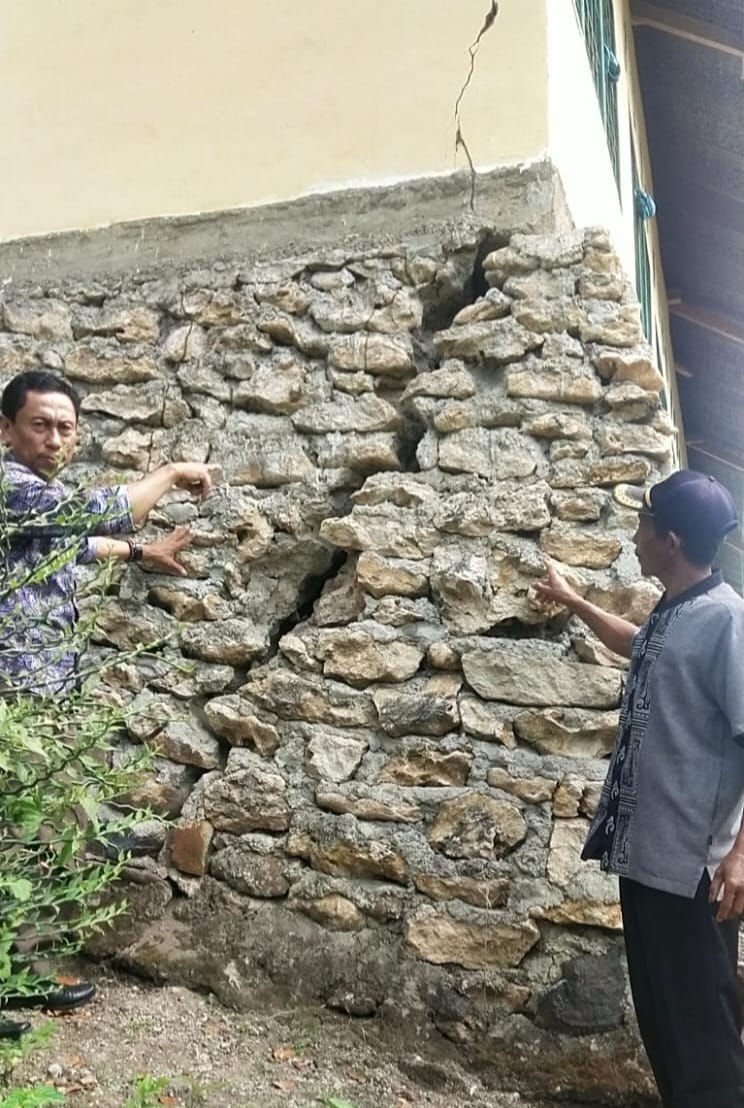“Bagian pondasi amblas sekitar dua meter. Kerusakan sampai pada bagian atap. Sejak tahun 2020 lalu sudah tidak ada proses belajar mengajar karena dikhawatirkan gedung akan roboh,” katanya.