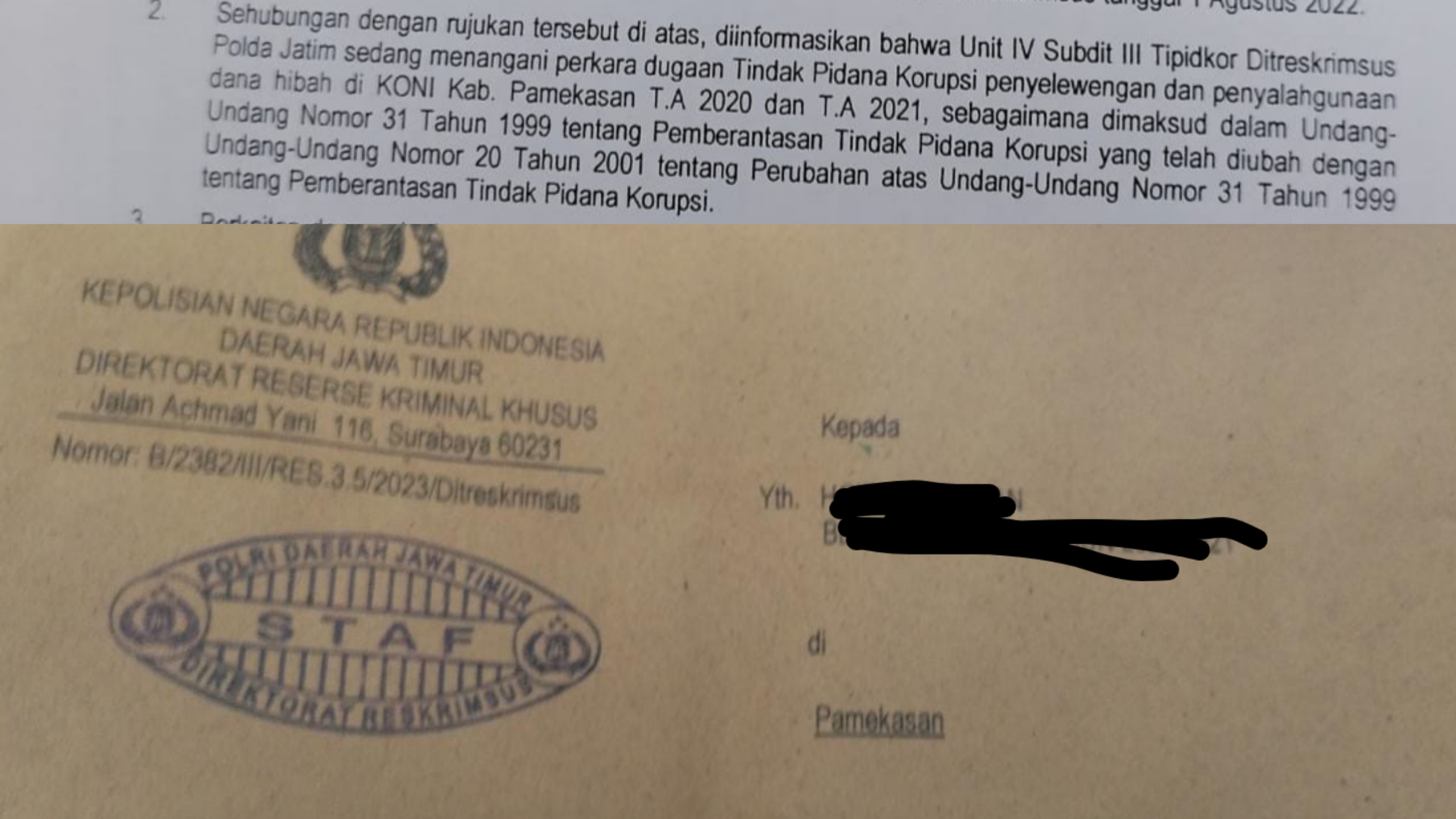 Ketua Koni Johan mengatakan kalau hal tersebut memang benar, dilakukan pemeriksaan oleh tim Polda Jawa Timur.