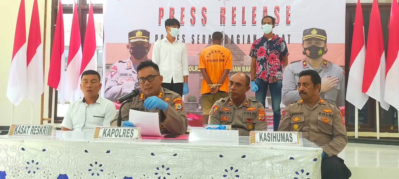 “Pelaku ditangkap sekitar pukul 04 : 15 WIT, terduga ditangkap berdasarkan Laporan Polisi Nomor: LP/37/II/2023/ Polres SBB/Polda Maluku, tanggal 28 Februari 2023,” demikian disampaikan Kapolres SBB AKBP Dennies Andreas Dharmawan, kepada awak media, bertempat di Aula Bhayangkara Mapolres SBB, Rabu (01/03/23).