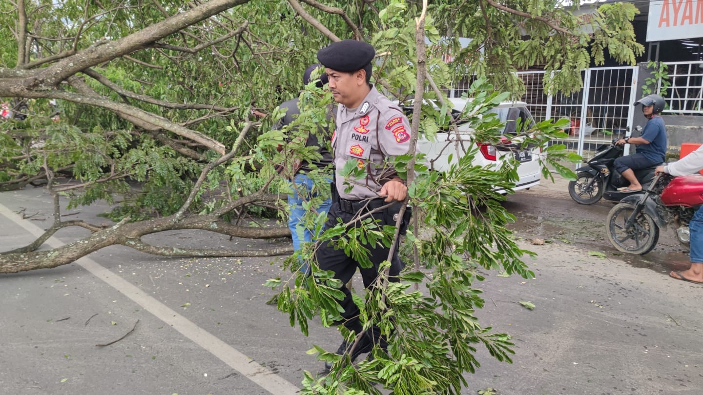 Sigap Jajaran Personel Polres Cianjur Respon Pohon Tumbang