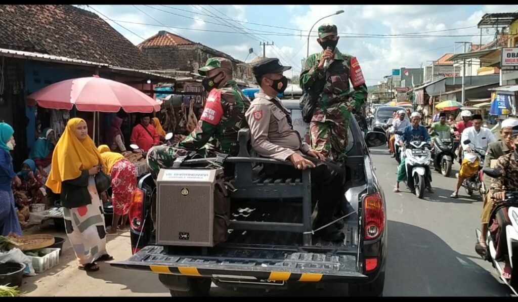 Gunakan Pengeras Suara, Polsek Palengaan Bersama Petugas Gabungan Himbau Warga Patuhi Prokes