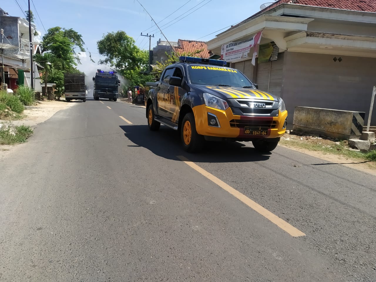 Kawal Penyemprotan Disinfektan Mobil Water Canon, Kapolsek Pasean Sampaikan ini