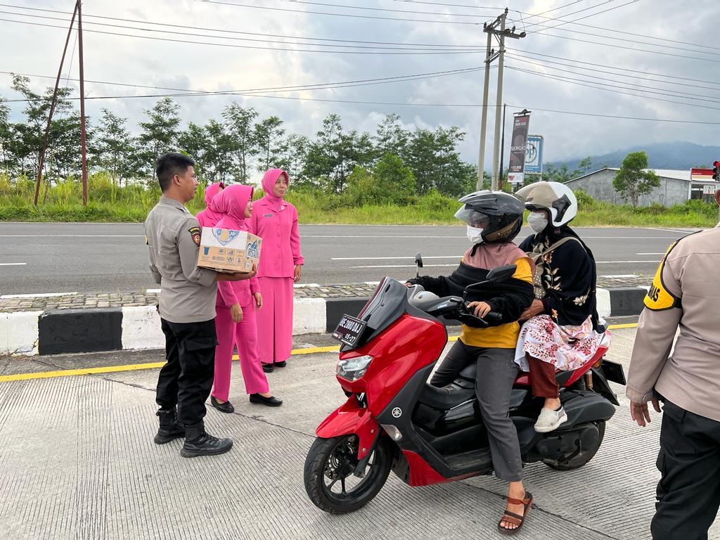 Takjil Gratis, Polsek Penengahan Bagikan di Area Exit Tol Bakauheni Utara