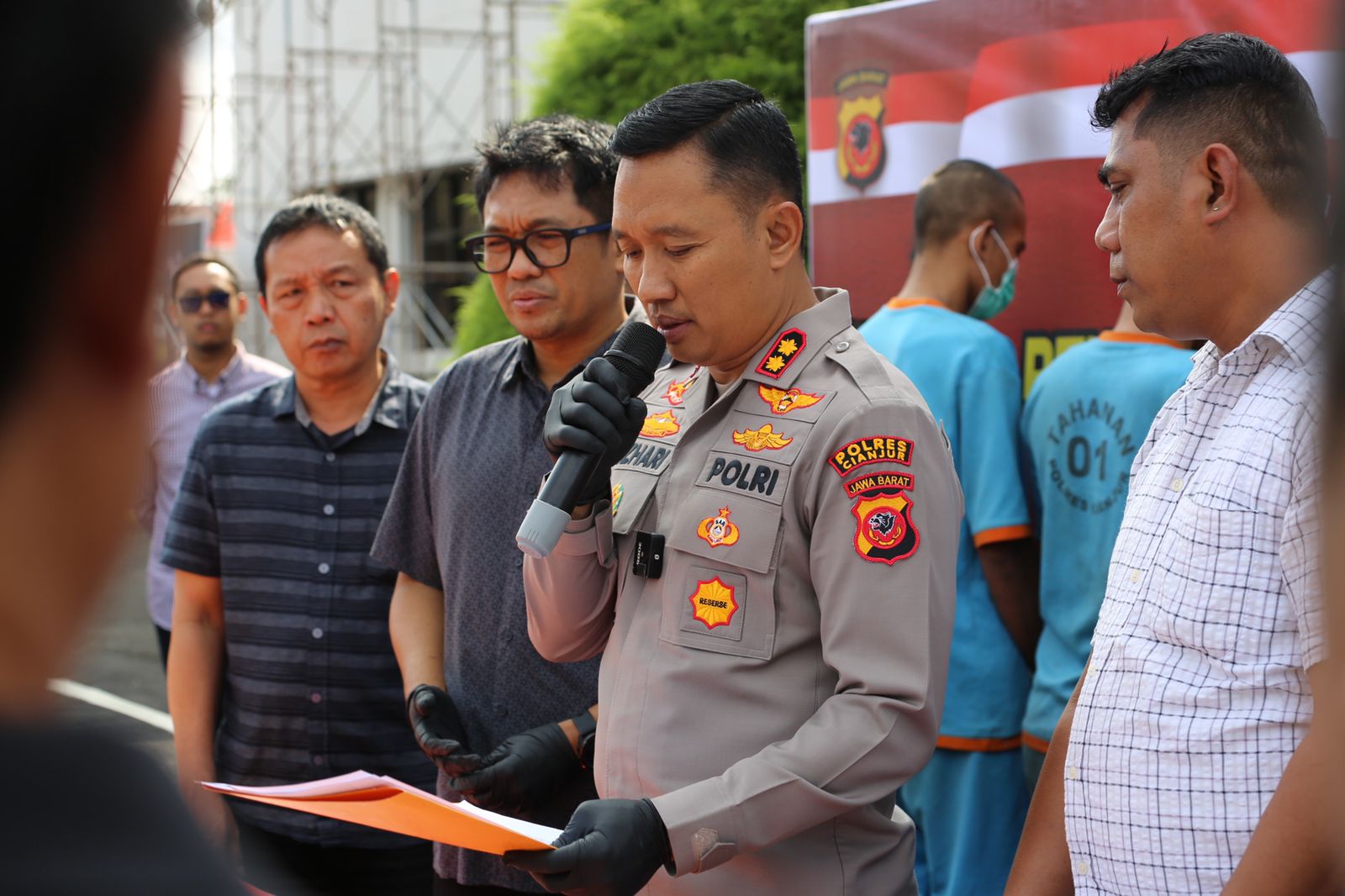Kapolres Cianjur AKBP Aszhari Kurniawan, S.H., S.I.K., M.Si. menjelaskan dari 12 tersangka tersebut, 11 tersangka merupakan laki-laki dan 1 tersangka peremuan. Diantara para tersangka, ada yang berstatus suami istri.