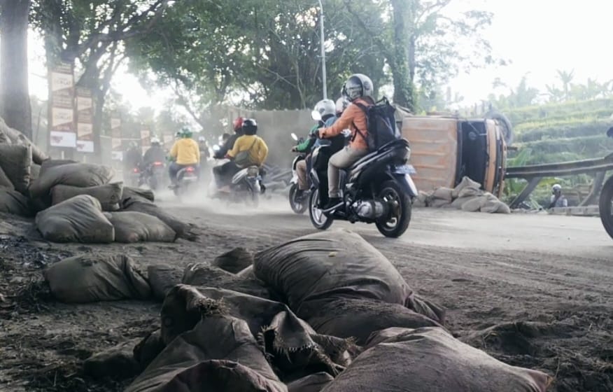 “Kami juga meminta bantuan petugas Damkar untuk membersihkan semen yang menutupi badan jalan,” kata dia.