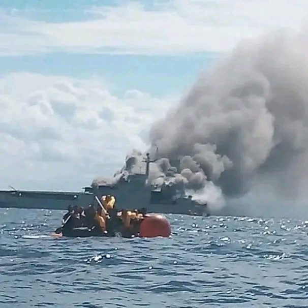 Sementara Komandan Basarnas Bantaeng Hamka Juga Turut Mendatangi Lokasi Kebakaran Kapal Perang Buatan Jerman Itu Pada Posisi Sekitar 8_9 Nautical mile (NM) Dari Pelabuhan Bira,
