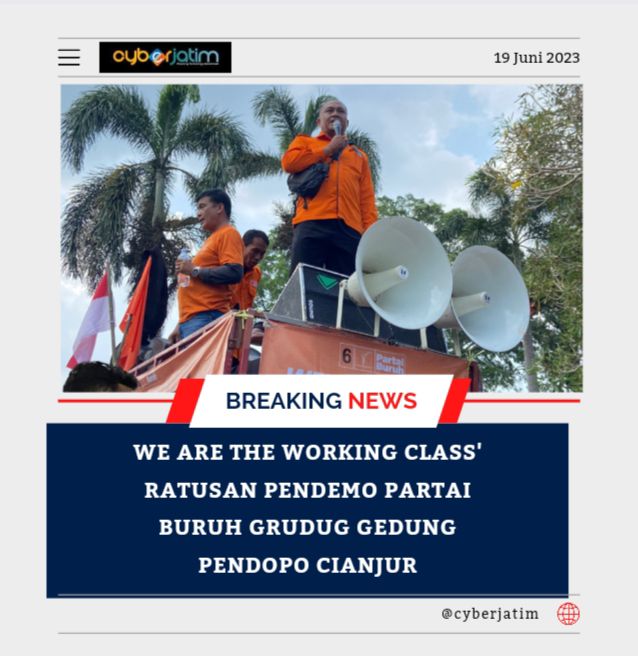 We Are the Working Class’ Ratusan Pendemo partai buruh Grudug Gedung Pendopo Cianjur